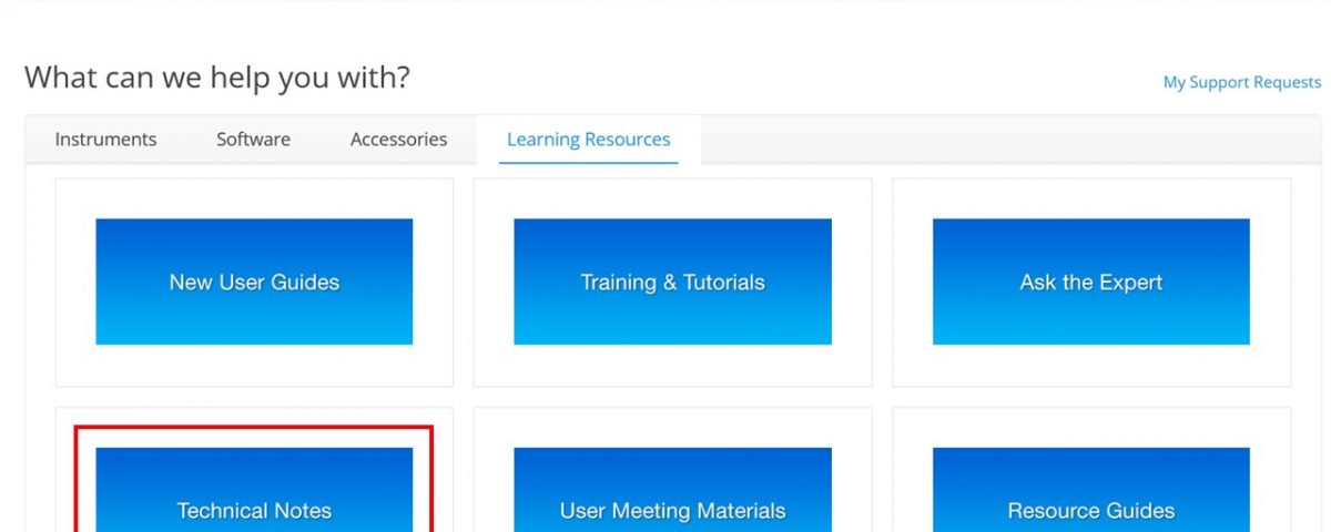 Clicking on the tile provides a complete list of available technical notes by instrument or software. You can also find technical notes under each instrument or software application. We continually add and update technical notes with the latest information and applications.