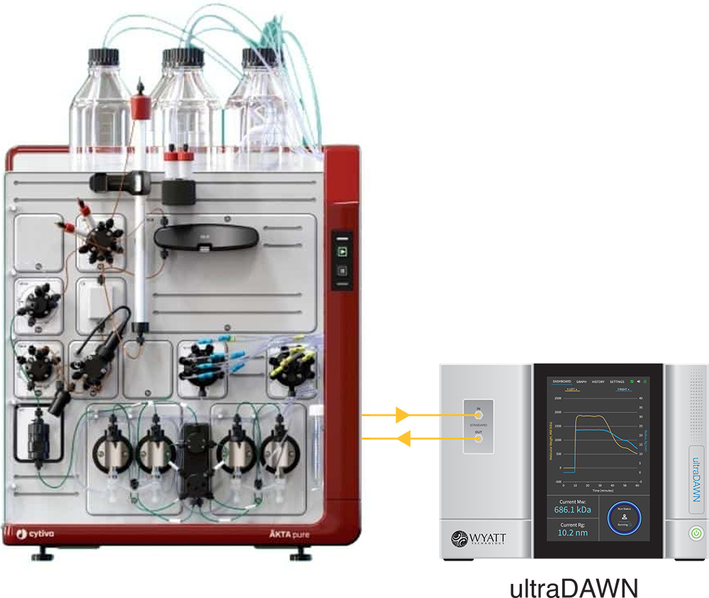 ultraDAWN configured in-line with an ÄKTA™ pure FPLC system.
