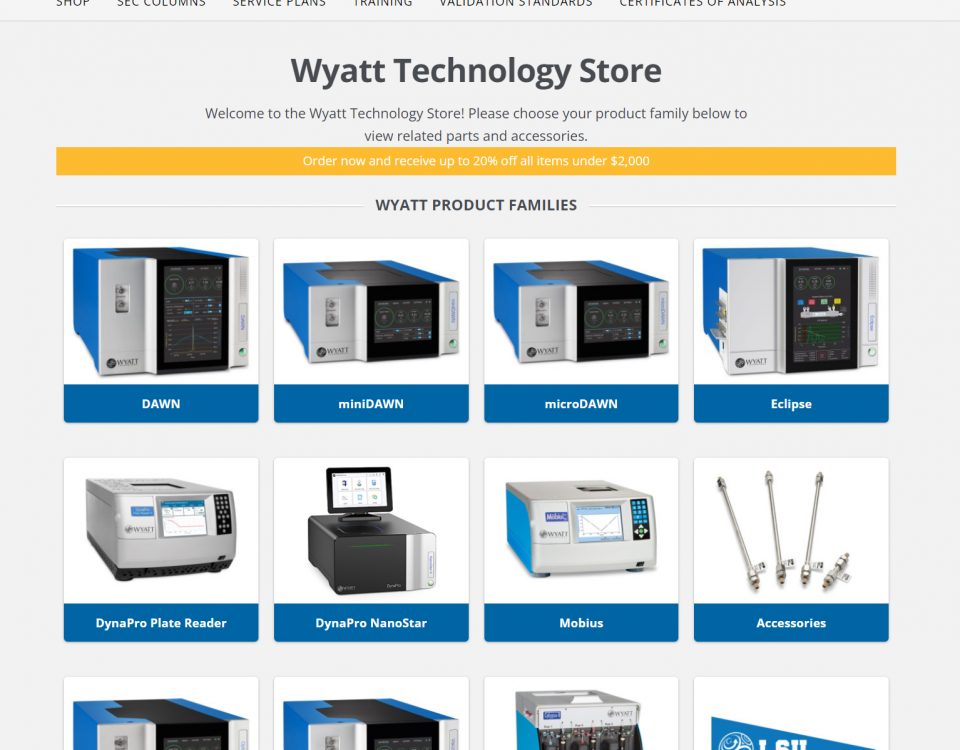 May 9, 2022 - All online orders under $2,000 are eligible for up to a 20% discount if purchased through the Wyatt Technology Store! Learn more.