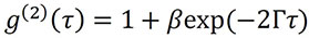 wobei β die Amplitude der Korrelationsfunktion bei einer Verzögerung von Null ist, Γ die Abklingrate ist und die Basislinie der Korrelationsfunktion bei unendlicher Verzögerung auf den Wert 1 zurückgeht.