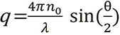 wobei n0 der Brechungsindex des Lösungsmittels, Λ die Vakuumwellenlänge des einfallenden Lichts und q der Streuwinkel ist.
