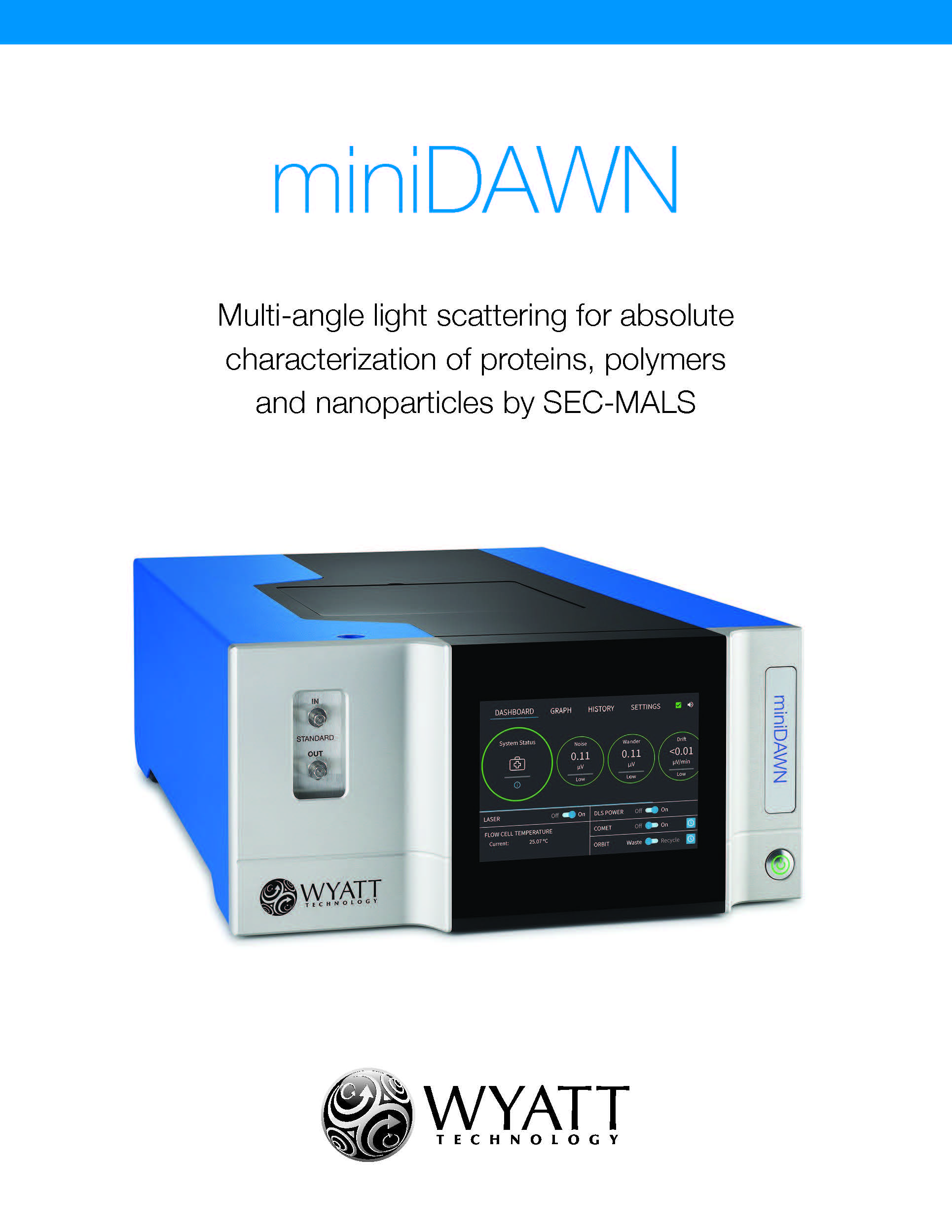 The miniDAWN determines absolute molar mass and size to characterize proteins, peptides, small polymers and nanoparticles in solution. Coupled to size exclusion chromatography (SEC or GPC), it eliminates the uncertainty and hassle of column calibration, for true confidence in macromolecular characterization.