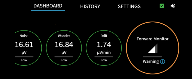 The forward monitor health indicator on the dashboard is useful to determining if your flow cell has an obstruction, such as an air bubble or partial clog.