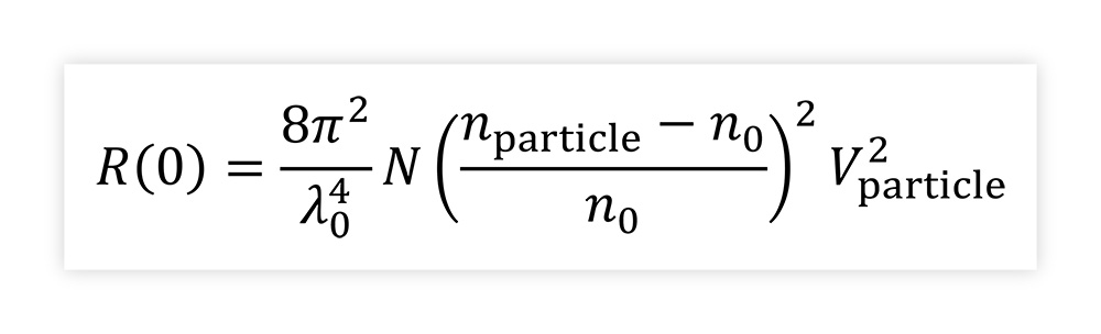 粒子浓度 (PC) 由散射强度、粒子体积和粒子材料和溶剂的折射率 nparticle 、nsolvent计算。